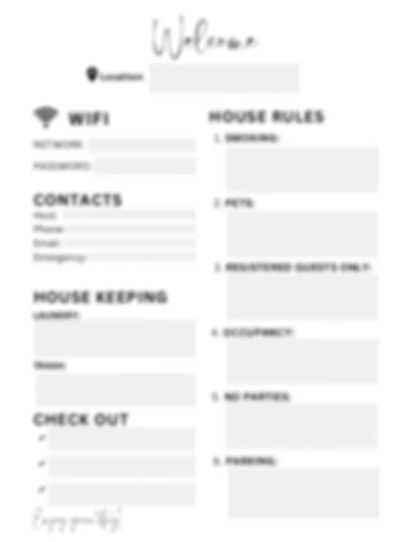 Set the tone for a 5-star stay with a beautifully organized, easy-to-customize Welcome Guide. This digital template helps you answer guest questions before they ask -so you AND guests can enjoy fewer questions and happier reviews.